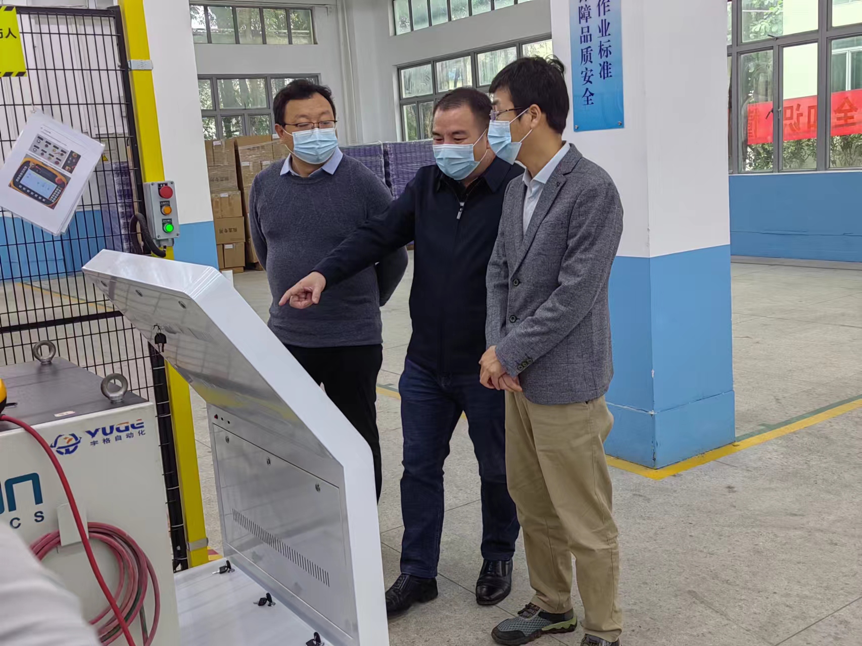 在校企座谈会上,郭有根总经理详细介绍深圳诺普信公司发展模式、主要产品和未来发展规划,特别是公司发展对电子信息和自动化方面的人才具有迫切需求,并表示公司将在公司设立企业奖学金,助力品学兼优的员工成长成才;程天骄详细介绍本批次员工实习的培养计划与具体内容,并表示对于实习期间表现优秀的员工,能够实施“实习+就业”的模式优先录用。李亚文表示,伟德victor1946电子信息科学与技术、人工智能、电气工程及其自动化专业与公司发展需求的专业人才完全契合,能够很好解决企业人才需求问题,同时感谢公司能够给员工提供实习成长的平台。袁训锋表示,校企双方将以员工生产实习为基础,逐步向智能化和自动化产线研发拓展,期待校企双方有更深入的合作。公司总经理郭有根向伟德victor1946赠送“扎根秦岭育贤才,助力企业展翅飞”的锦旗,袁训锋一行考察诺普信作物科学股份有限公司自动化生产线。
