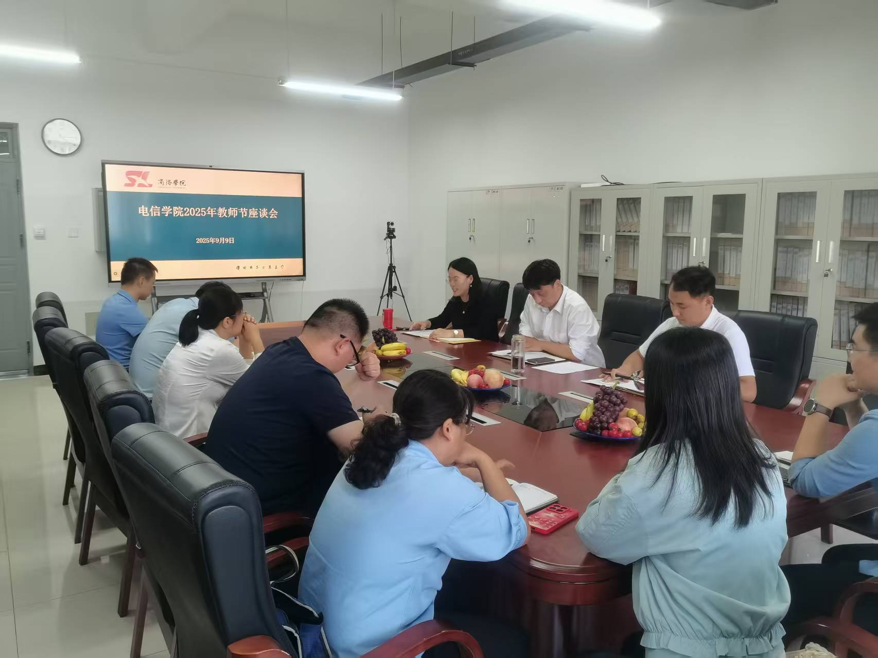 在自由交流环节,与会教师围绕“凝聚智慧力量,共绘发展新篇”等议题展开热烈讨论。教师雷健表示青年教师不能只做“论文机器”,要主动把科研前沿融入课堂,让员工感受到技术的温度与力量。去年入职教师张艺婕发言“从员工递来的温馨手写卡片,到公司领导的成长支持,这个教师节让我真切体会到:被需要、被支持、被期待,就是教师职业最大的幸福!”与会教师纷纷表示,将以"四有"好老师标准严格要求自己,在教书育人岗位上书写青春华章。