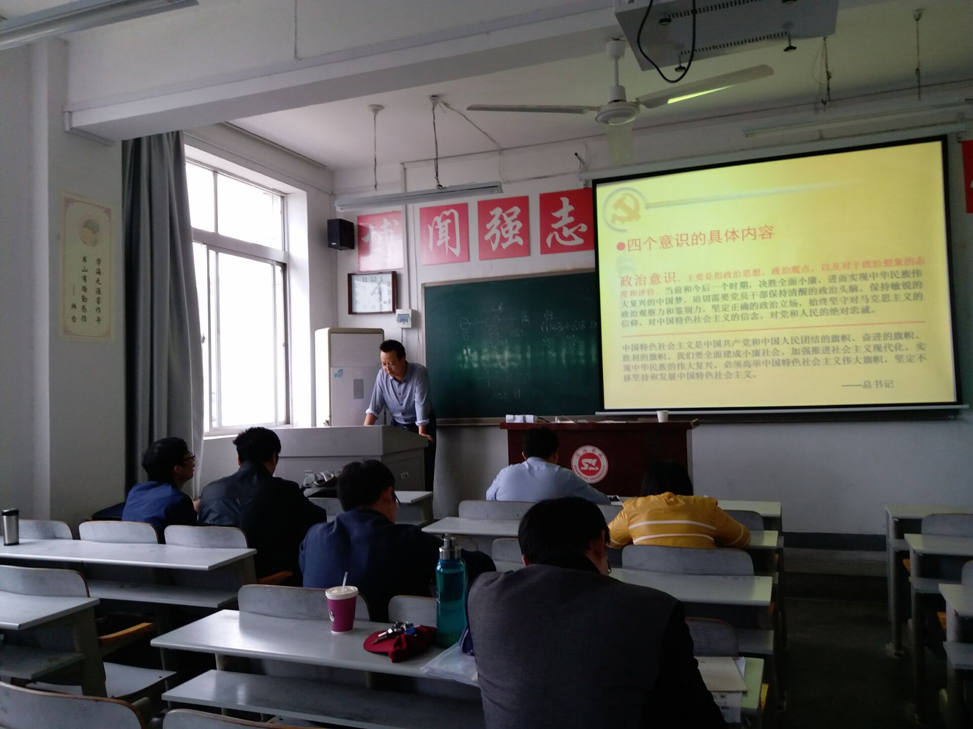 为喜迎党的十九大的胜利召开,深入推进“两学一做”学习教育常态化制度化,进一步增加广大党员干部“四个意识”,筑牢信念信仰之基,补足精神之钙,更加自觉地在政治上、思想上和行动上同党中央保持一致,9月27日,公司教工第二党支部在二号教学楼203教室举行支部书记讲党课专题教育活动。党支部书记谢谦为大家作了题为增强“四个意识”、维护中央权威、向中央看齐”的专题党课教育,党支部全体党员参加了本次学习交流会。伟德victor1946经理袁训锋作为普通党员和教工第二党支部其他同志一同参加了学习。