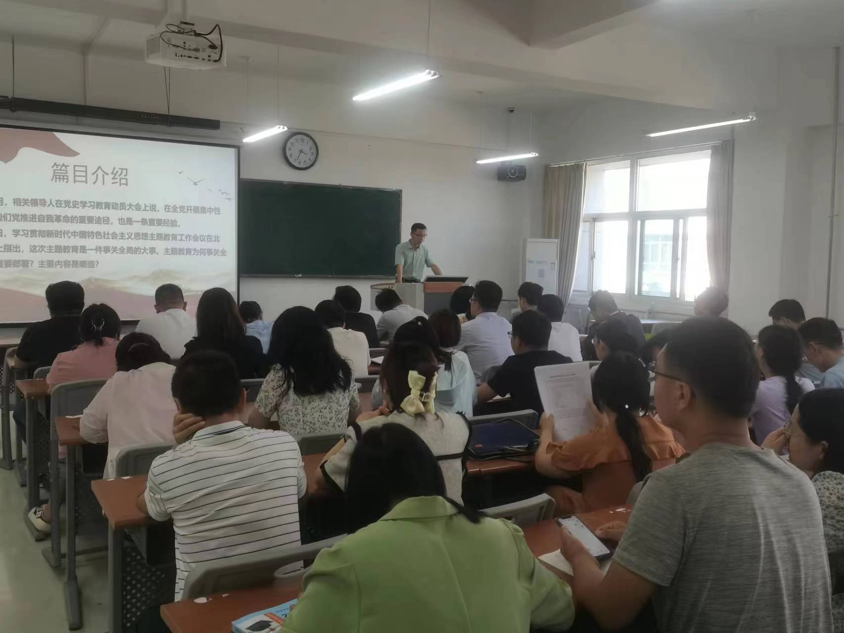 赵永平从主题教育的进程和现实意义入手,详细讲解了主题教育的目标要求、如何开展好主题教育和习近平新时代中国特色社会主义思想的内容等,深入阐述了“十个明确”“十四个坚持”“十三个方面取得的成就”的重大意义,要求全体教工党员要深刻领悟“两个确立”的决定性意义,坚决做到“两个维护”;认真贯彻落实党中央关于教育的重大决策部署,谋划和推进教育强国建设;牢固树立全心全意为人民服务的宗旨,认真解决师生急难愁盼问题;深入推进全面从严治党走深走实,营造风清气正的政治生态和育人环境。