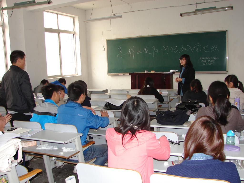 本次党课每班上课时间分别为20课时,授课老师分别为系党总支委员、党政办公室主任杨延锋老师,辅导员魏书灵副教授,辅导员陈倩老师以及李磊老师。培训过程中,杨延锋老师从“入党必须履行的手续和党员的培养教育”两方面为所有积极分子做了深刻详细的讲解。魏书灵老师从“中国共产党的组织原则、作风和纪律;党员先进性教育专题”等几个方面进行了全面讲解。我系辅导员李磊就“党的性质、党的指导思想、党的纲领、党的历史”四个方面结合自己所学专业为同学们上了一堂生动有趣的课程。并提出了“怎样认识中国梦”等问题让大家进行讨论。陈倩老师就党员的权力和党员的义务为大家做了详细解说,使同学们更加深刻明确了党员的权利和义务。课程知识点虽然繁多,但是老师们有理有据,声情并茂,语言生动,课堂气氛轻松活跃。