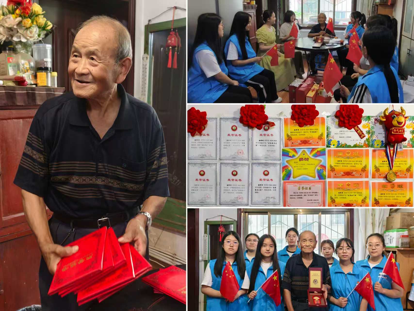 7月17日,实践团成员来到杨宝山老人家中,同学们向杨爷爷致以诚挚问候与崇高敬意,表达年轻一代对保家卫国功臣的由衷感激。