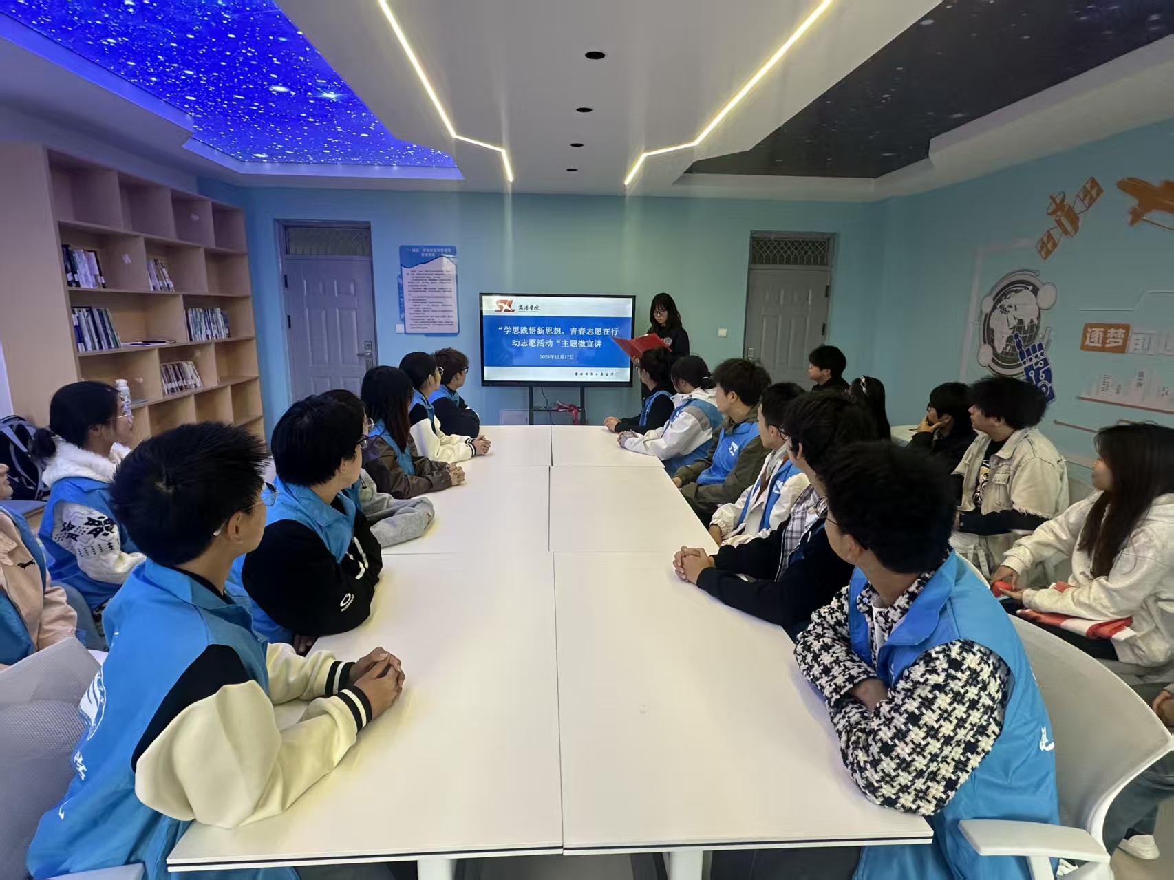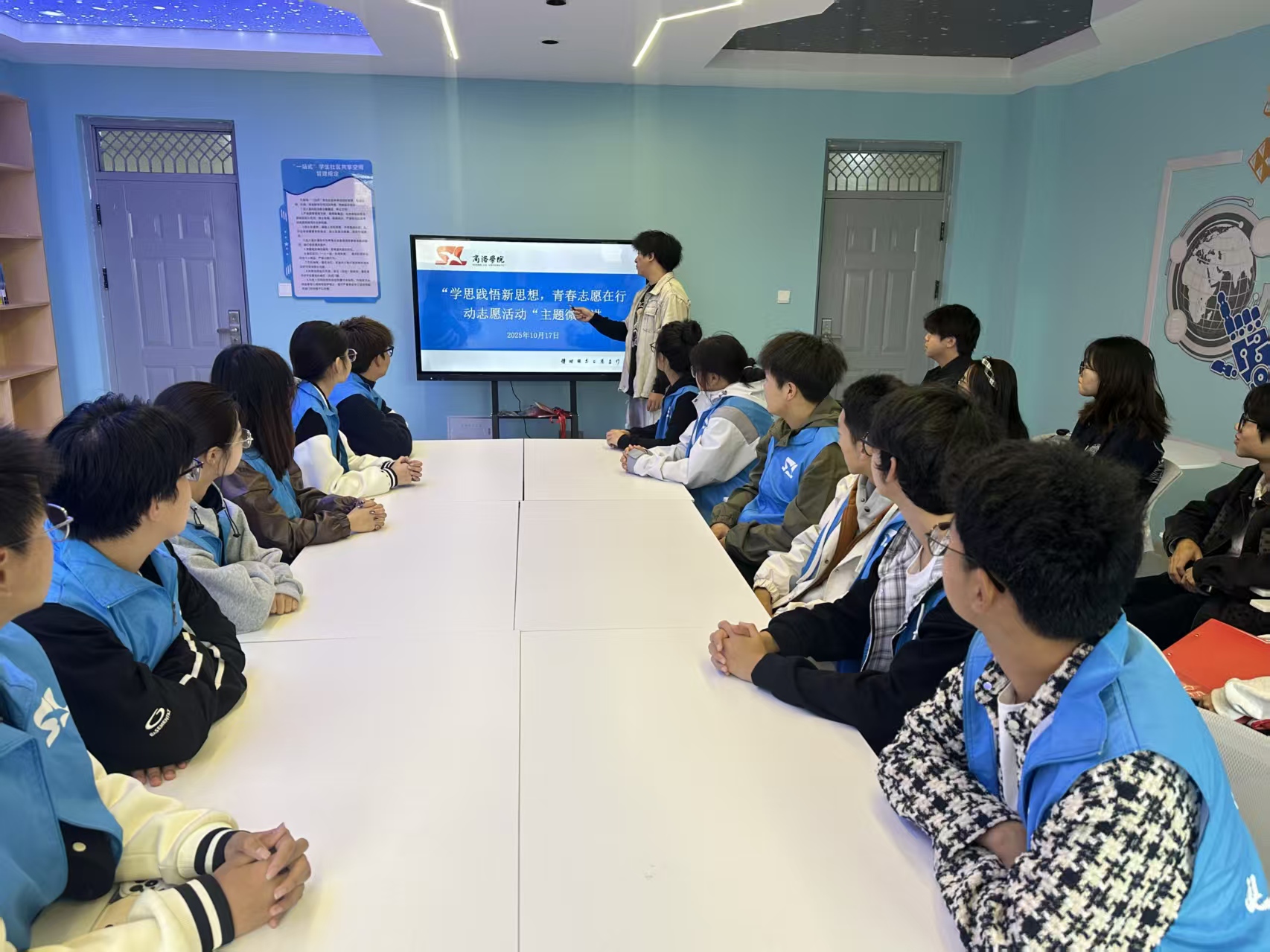 活动期间 ,李天宜作为志愿服务代表,围绕“志愿者工作核心与精神内涵”展开分享,结合自身参与志愿经历,用生动案例阐释“奉献、友爱、互助、进步”志愿精神的本质,详细讲解志愿者在服务中需具备的沟通技巧、责任意识与应变能力,让在场同学对志愿者工作有了更具体、更深刻的认知,并为公司青年志愿服务队进行宣传,引领更多的同学加入后续志愿活动。
