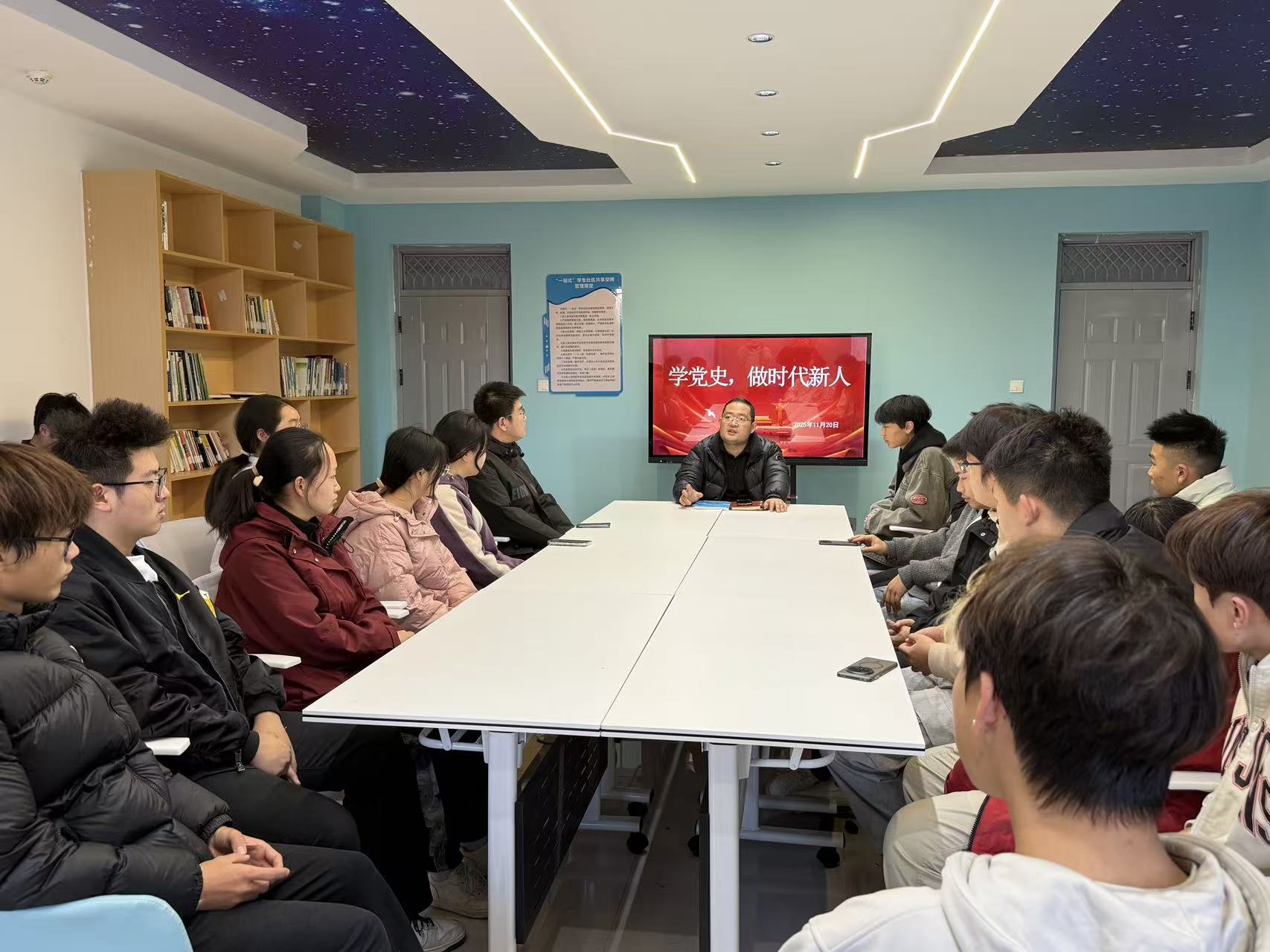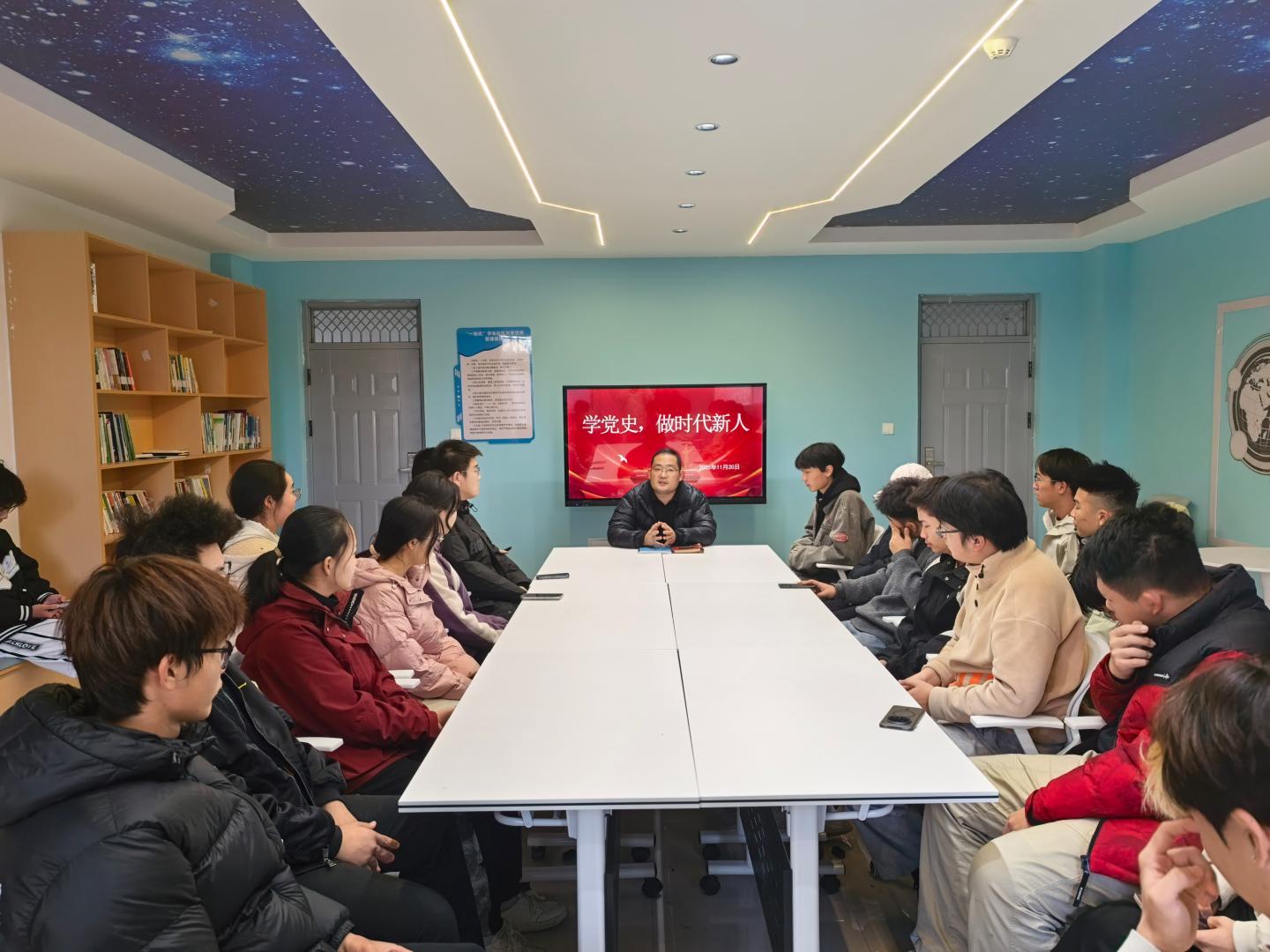 为深化“一站式”员工社区育人功能,引导青年员工从党史中汲取奋进力量,11月20日,伟德victor1946以“学党史 做时代新人”为主题,辅导员唐龙龙组织20余名员工代表在丹江校区18号员工公寓“寓”见“悦”创空间开展沉浸式主题教育活动,让红色基因融入青春血脉,让初心使命照亮成长之路。